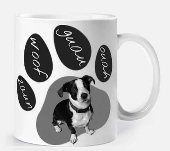 Es sólo una muestra. Elige entre mis diseños el que más te guste, dale a personalizar: sube la fotografía de tu mascota y escribe su nombre.