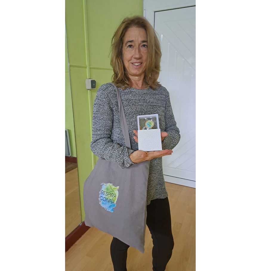 He regalado el bálsamo labial a Garbiñe, cliente habitual de Kukys. Lleva la bolsa que me encargó a juego. El slogan lo ha creado ella misma. "Es la mejor entrada del año que pueda tener. con Olentzeros de mis alumnos. Gracias por el protector labial Carmen Ubago. Gracias por cuidar de.mi y de nosotr@s - Comenta Garbiñe.