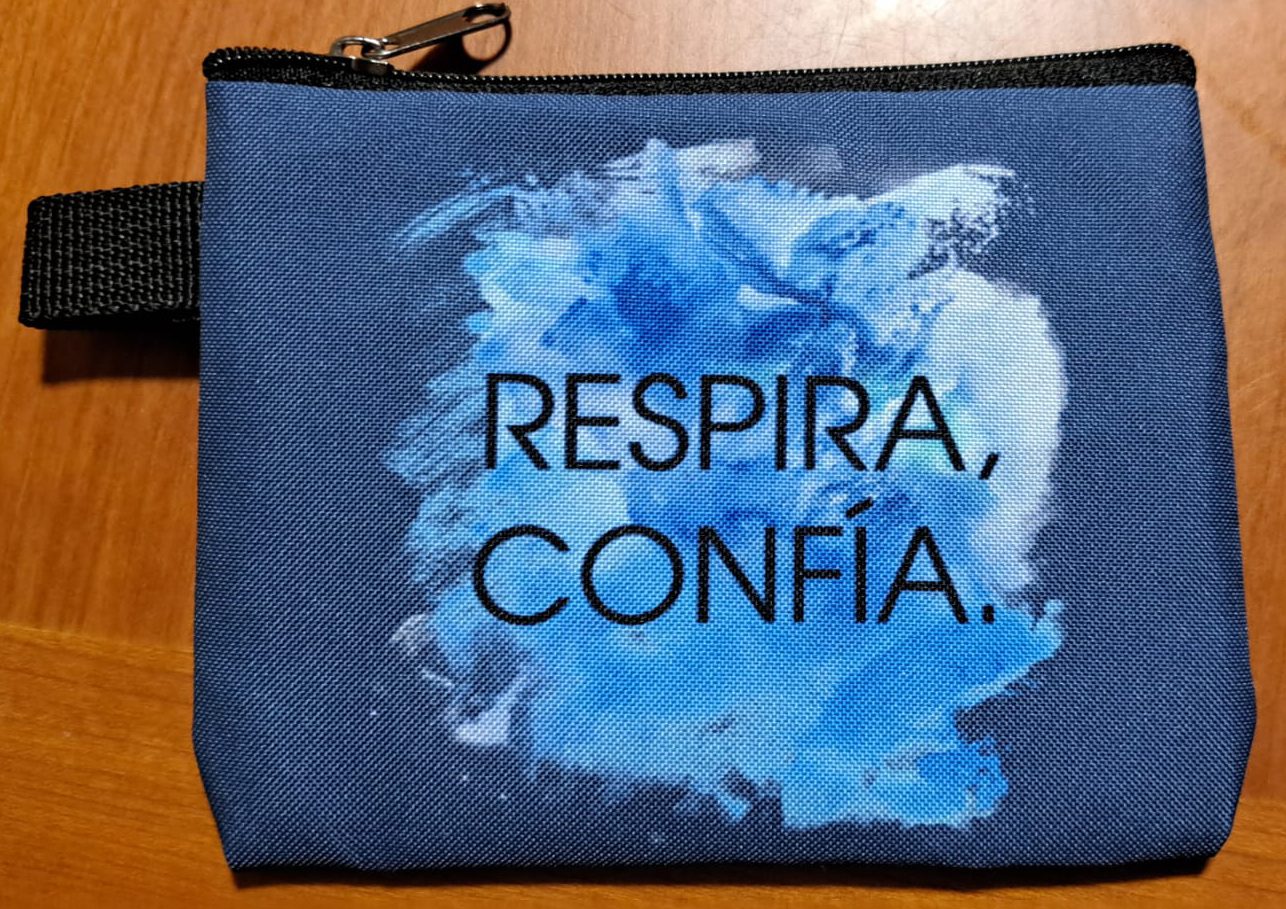 Fotografía de 1 de los 20 MONEDEROS que me encargó Garbiñe, 10 azules claros y 10 azules oscuros. MONEDEROS / LLAVEROS / TARJETEROS /NECESERES ligeros. Como llavero evitará que tus llaves rayen tu móvil. 13,5 cm ancho x 10,5 cm alto.