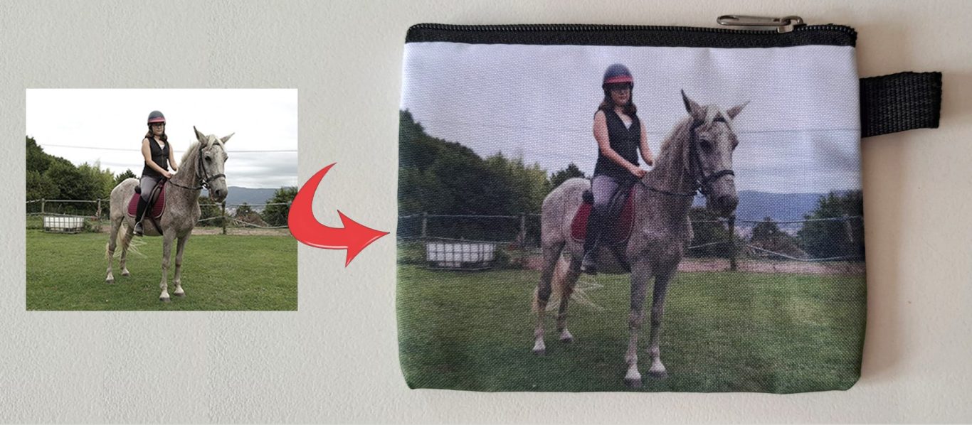 Leire me ha encargado este original MONEDERO para regalar a su hija en su cumpleaños, con la fotografía de su hija montada a caballo, su gran pasión.
