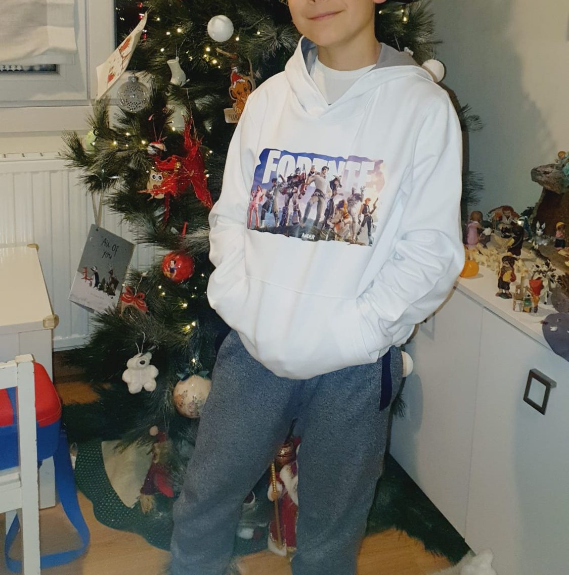 Fotografías de la SUDADERA y la taza que Ander ha pedido para el Olentzero con su personaje favorito.