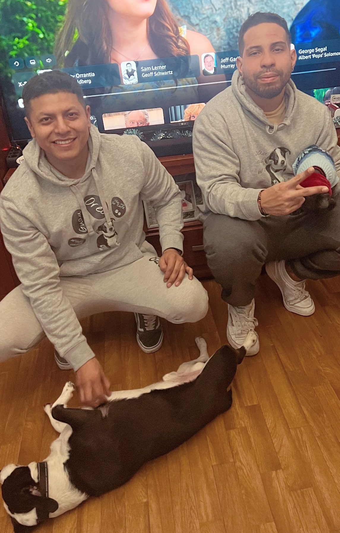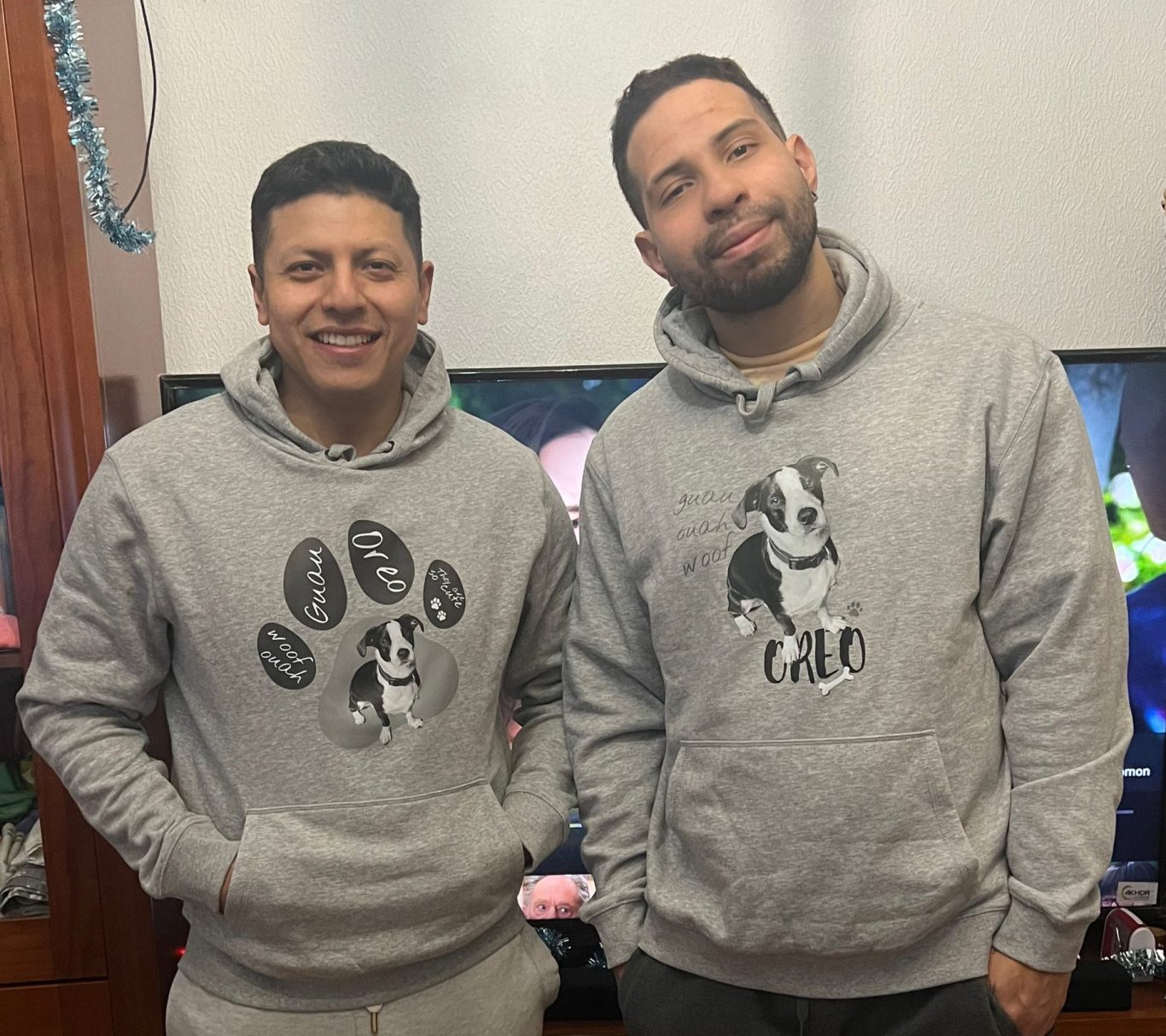 Mª Eugenia regaló en Navidad estas sudaderas personalizadas con la fotografía de su perro a su hijo y al novio de su hija, apasionados de su perro. Mª Eugenia escribió en Comentarios: "Les encantaron sus sudaderas. ¡Gracias por vuestras fotografías, estáis guapísimos!"