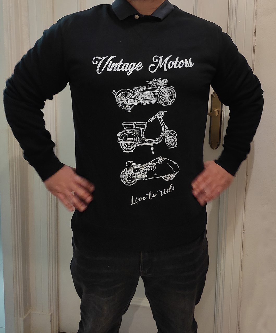 Pablo. Sudadera negra sin capucha. Vintage Motors