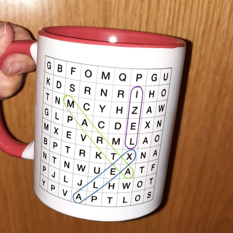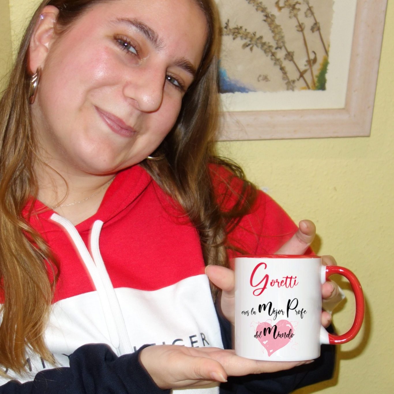 Fotografías de la taza que nuestros hijos regalaron a Goretti, que era una buena profesora particular con mucha paciencia.ç