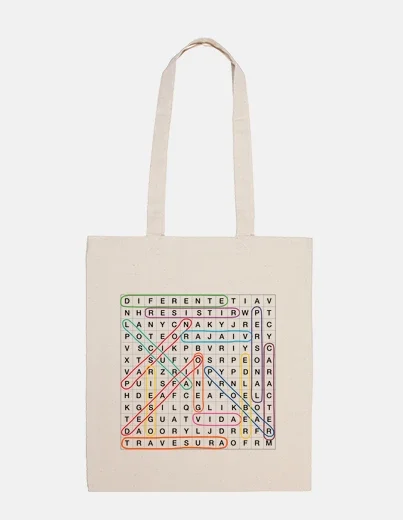 Es sólo una muestra. Antes de pagar ponte en contacto conmigo por teléfono o WhatsApp al 656 73 22 14 o por e-mail a contacto@kukys.es. Envíame envíame tus palabras. Te enviaré una fotografía para que veas cómo quedará y me des el OK y la insertaré en la bolsa o mochila que hayas elegido para que puedas pagarla. Esta bolsa o mochila tiene un precio diferente por el trabajo de hacer la sopa de letras.