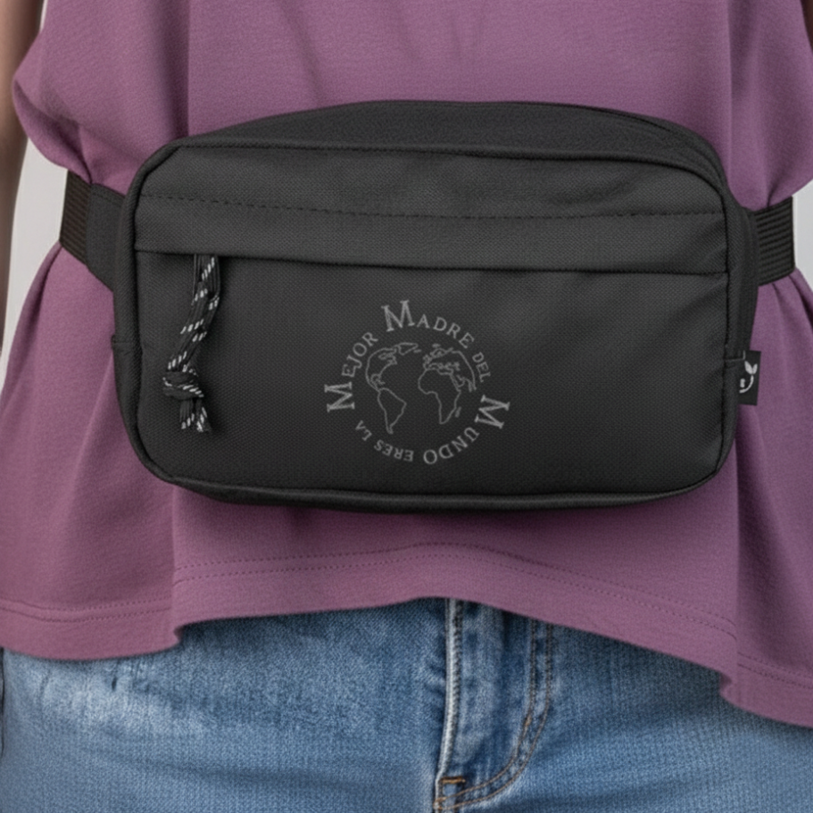 Materiales: riñonera de poliéster reciclado 600D y forro de poliéster reciclado 210D.
