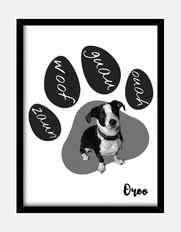 Es sólo una muestra. Elige entre mis diseños el que más te guste, dale a personalizar: sube la fotografía de tu mascota y escribe su nombre.