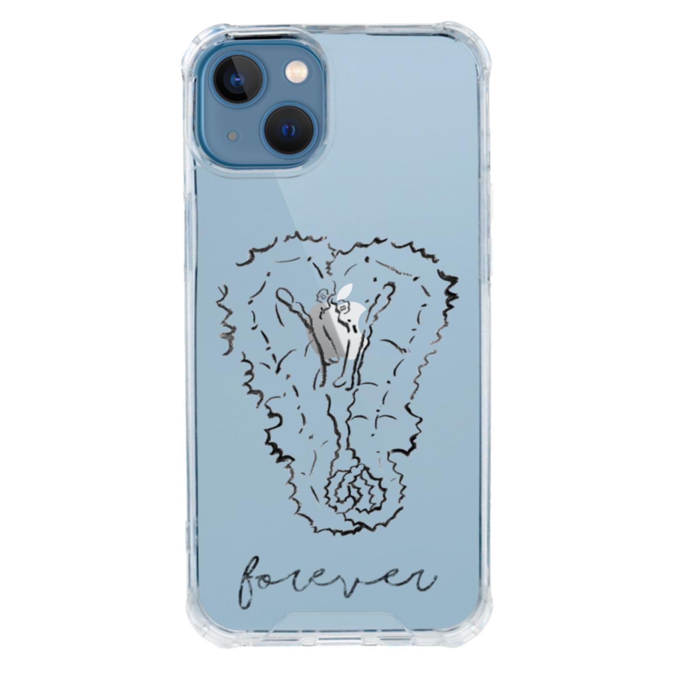 Ejemplo de funda de silicona trasparente reforzada impresa con diseño de color claro y con fondo transparente (sin fondo). Aconsejado para móviles de color oscuro en la parte trasera.
