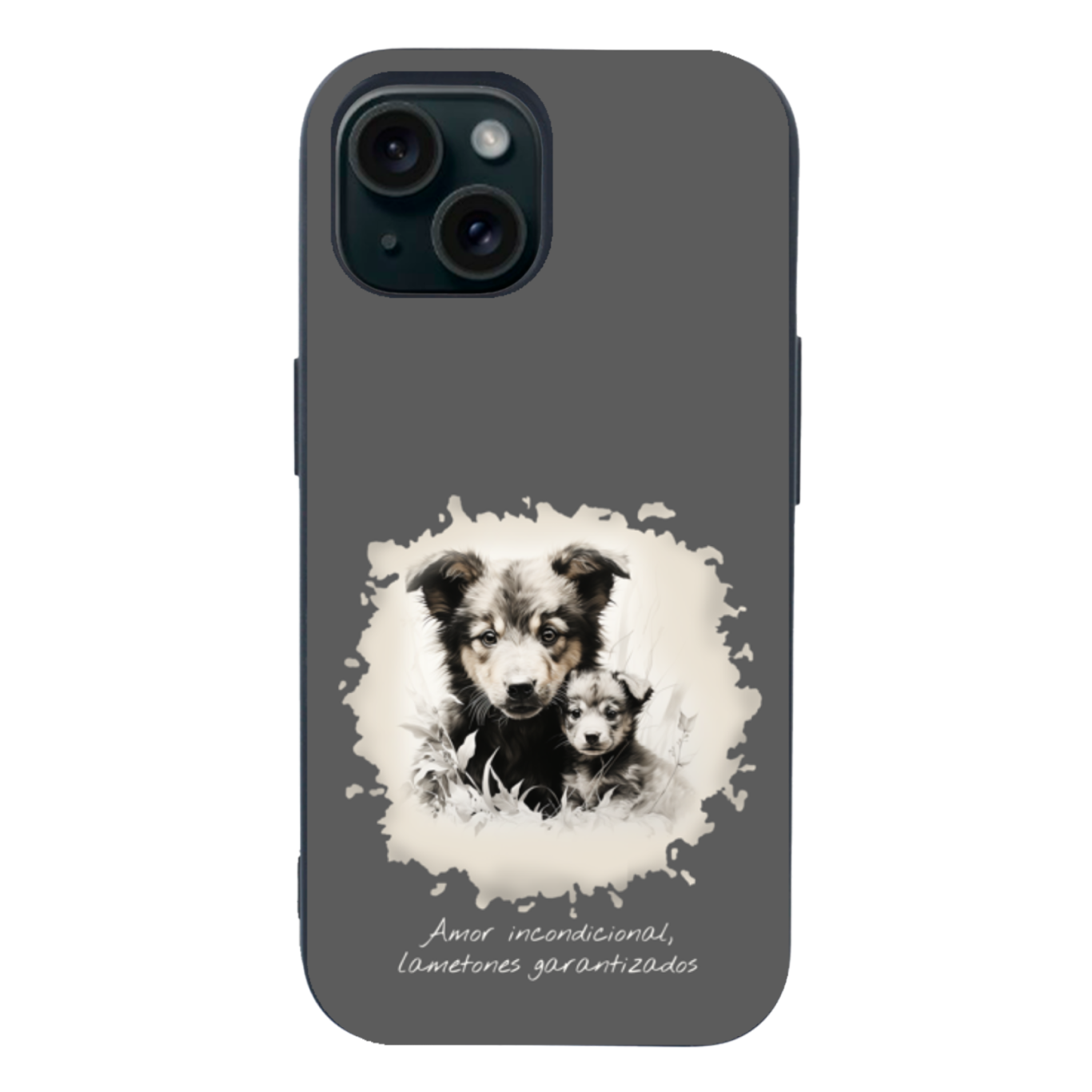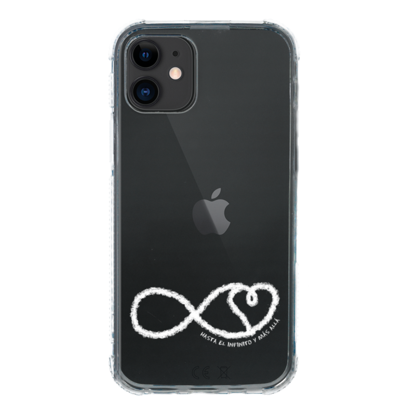Ejemplo de funda de silicona trasparente reforzada impresa con diseño de color oscuro y con fondo transparente (sin fondo). Aconsejado para móviles de color claro en la parte trasera.