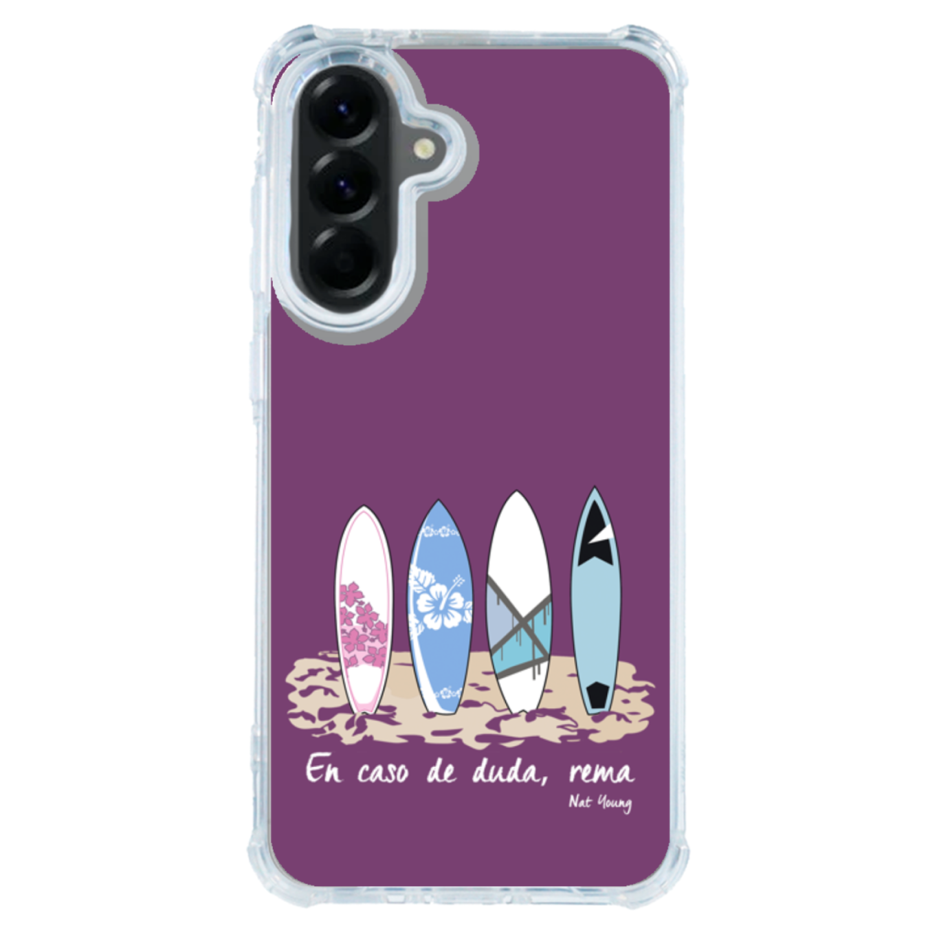 Ejemplo de funda de silicona trasparente reforzada impresa.